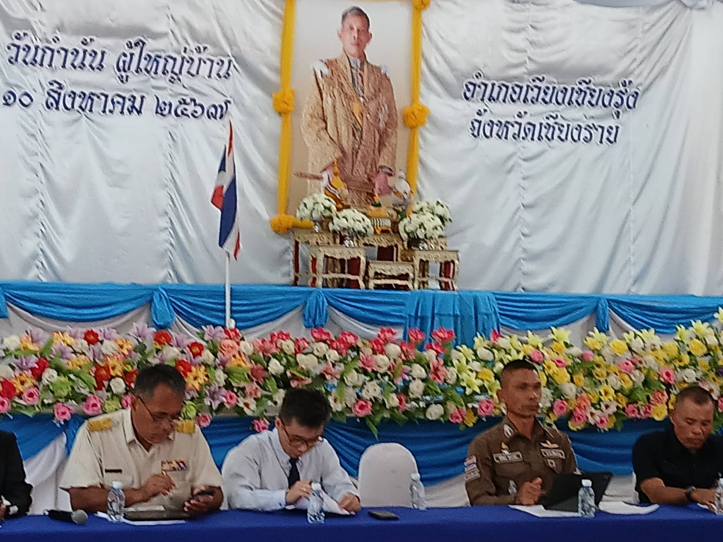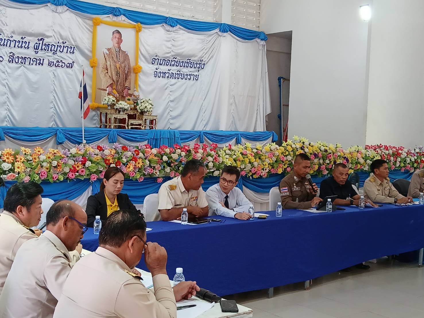 ประชุมหัวหน้าส่วนราชการ กำนันผู้ใหญ่บ้าน ณ หอประชุมอำเภอเวียงเชียงรุ้ง