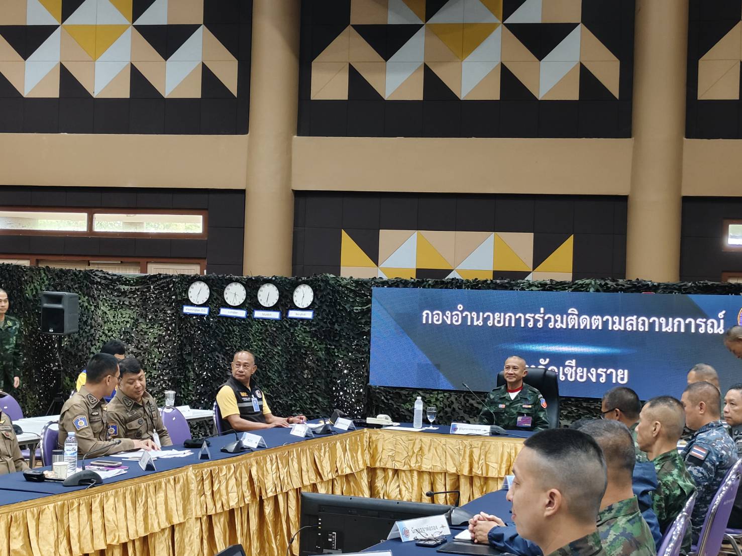 พ.ต.อ.สันติ กองสมัคร รอง ผบก.ภ.จว.เชียงราย พร้อมด้วย ผกก.ในสังกัด ภ.จว.เชียงราย รับการต้อนรับ พล.อ.ทรงวิทย์ หนุนภักดี ผู้บัญชาการทหารสูงสุด เพื่อเยี่ยมการฝึกทดสอบแผนเผชิญเหตุในการแก้ไขปัญหาการก่อการร้ายภายใต้กรอบการฝึก CMEX24 ณ หอประชุมใหญ่ มหาวิทยาลัยราชภัฏเชียงราย