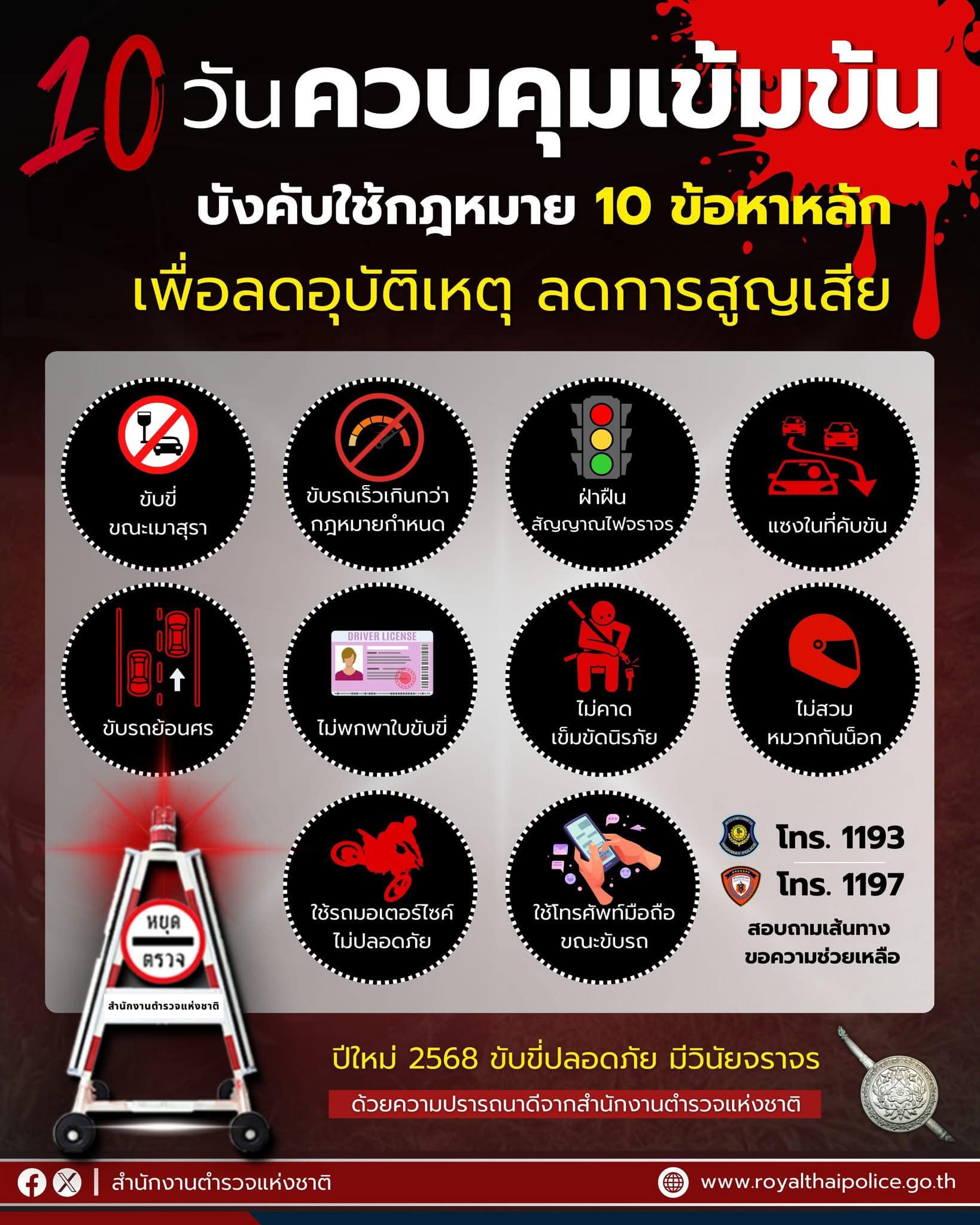 10 ข้อห่วงใยจาก ( ใจ ) ตำรวจ สงกรานต์ 2568 ขับขี่ปลอดภัยเดินทางถึงที่หมายไปหาคนที่ท่านรัก