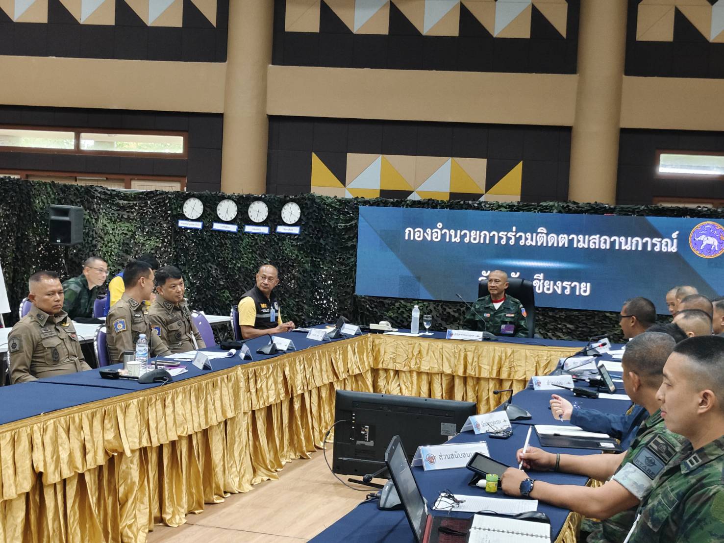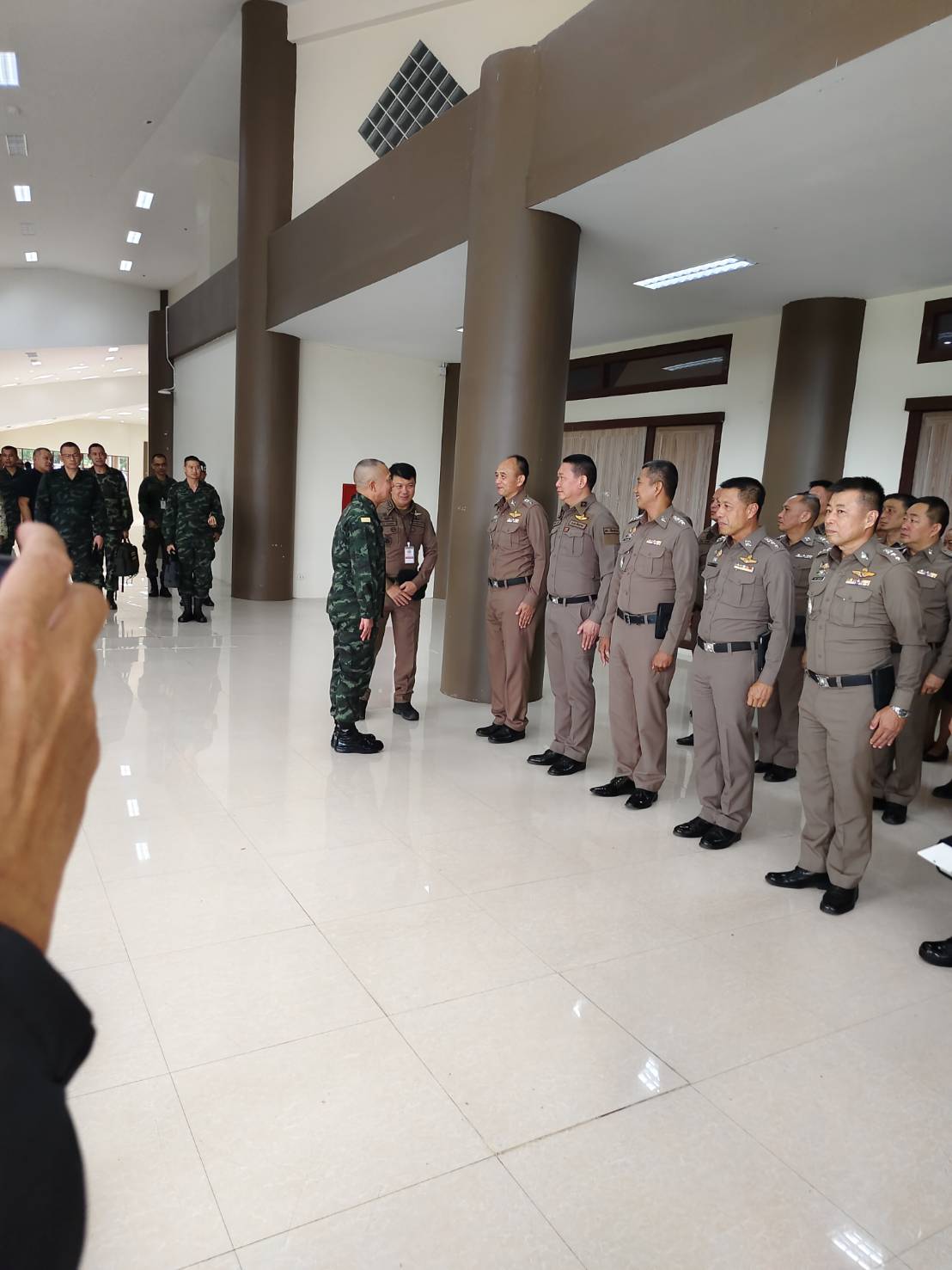 พ.ต.อ.สันติ กองสมัคร รอง ผบก.ภ.จว.เชียงราย พร้อมด้วย ผกก.ในสังกัด ภ.จว.เชียงราย รับการต้อนรับ พล.อ.ทรงวิทย์ หนุนภักดี ผู้บัญชาการทหารสูงสุด เพื่อเยี่ยมการฝึกทดสอบแผนเผชิญเหตุในการแก้ไขปัญหาการก่อการร้ายภายใต้กรอบการฝึก CMEX24 ณ หอประชุมใหญ่ มหาวิทยาลัยราชภัฏเชียงราย